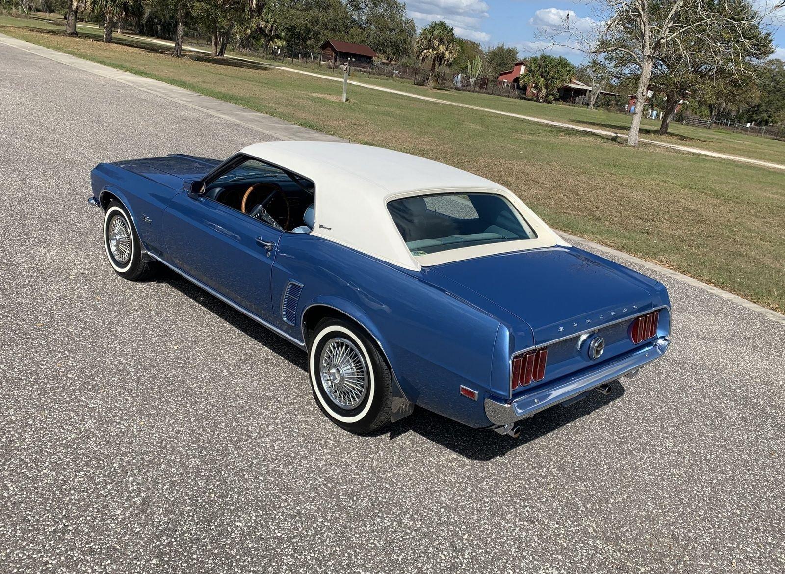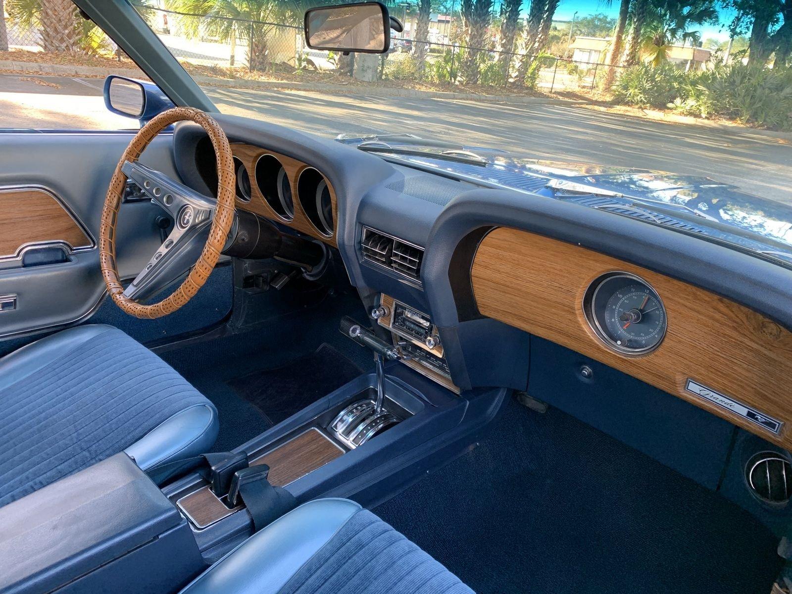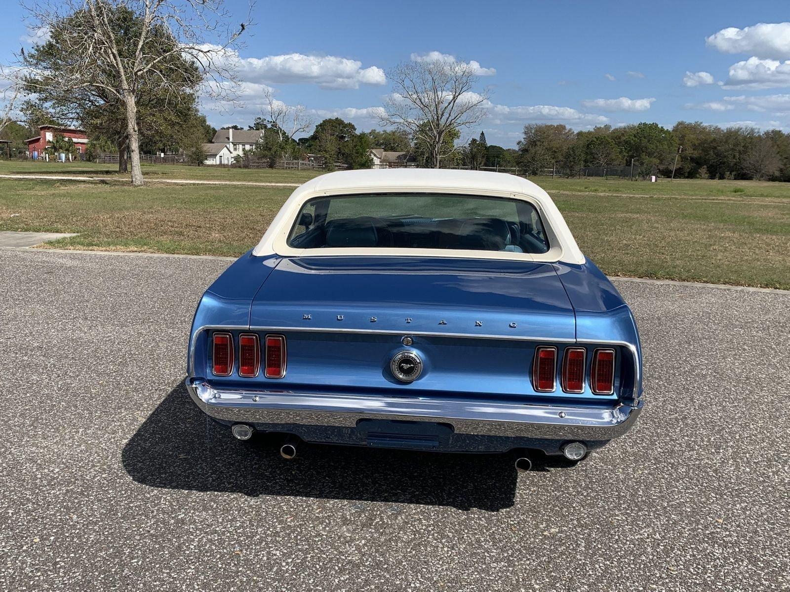 We are pleased to offer this 1969 Ford Mustang Grande for Sale. H Code 351 V8 engine, chrome engine accessories, FMX automatic transmission, 9” rear end, power steering, front power disc brakes, steel wheels with wire caps and radial white wall tires, Acapulco Blue metallic exterior, white vinyl top, factory color keyed sport mirrors, LED tail lights, blue bucket seat interior, center console, floor shifter, cold air conditioning, beautiful dash and gauges, AM/FM radio, DSO Code 72 San Jose, CA car. This Mustang looks and drives great! This Collectible First Year Grande will be an excellent addition to the family!