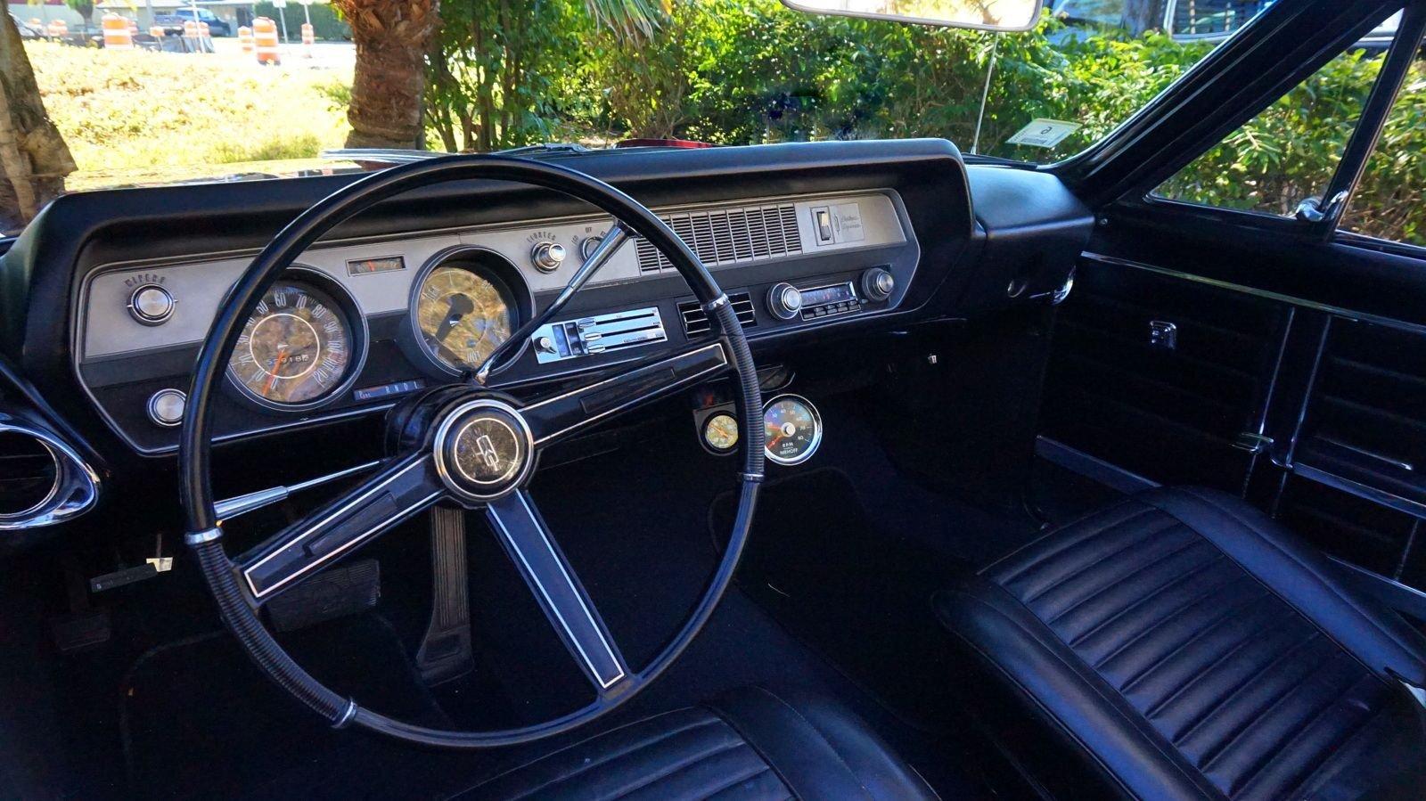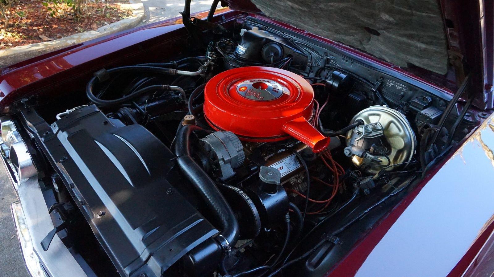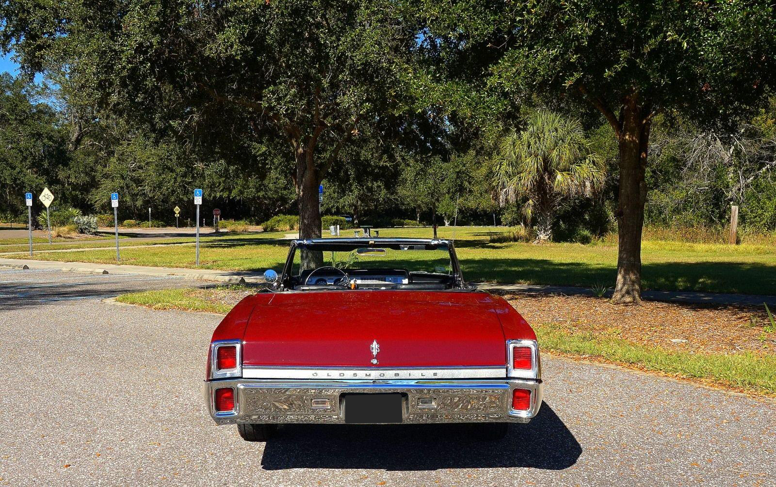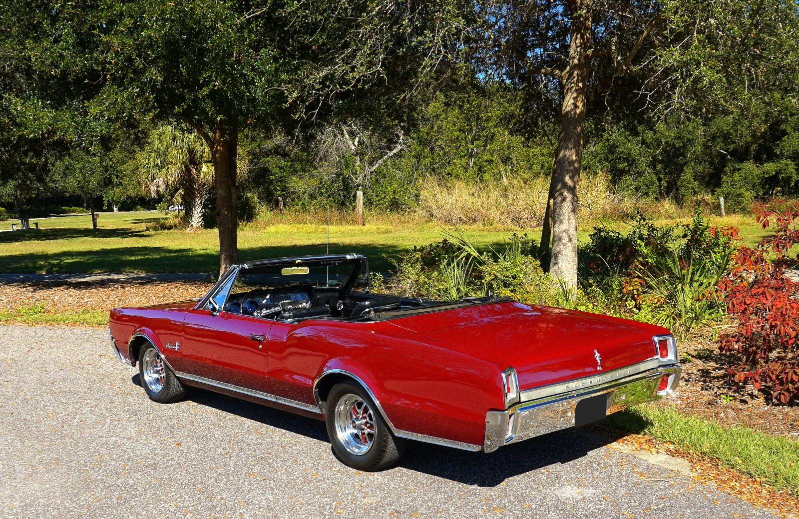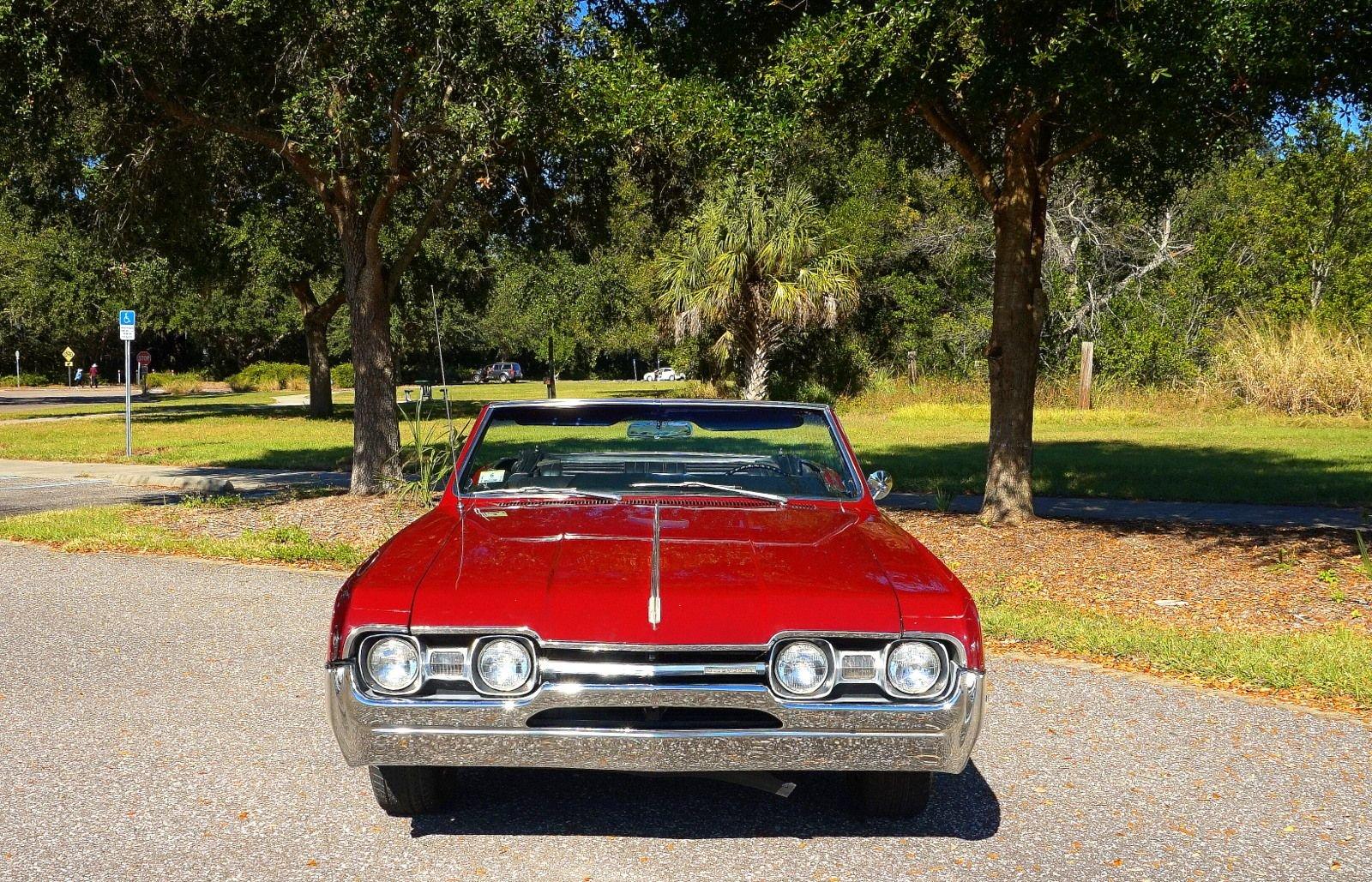 We are pleased to offer this 1967 Oldsmobile Cutlass Convertible for Sale. 330 Cu In V8 engine, automatic transmission, factory air conditioning car, 4 barrel carburetor, dual exhaust, power steering, power brakes, 15” chrome Rally Wheels with radial tires, Code N Burgundy Mist metallic exterior, driver's chrome sport mirror, black power convertible top with boot, black bucket seat interior, power windows, upgraded radio hidden in the glove box.